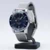 The watch has a striking blue sunburst dial and a blue ceramic rotating bezel.